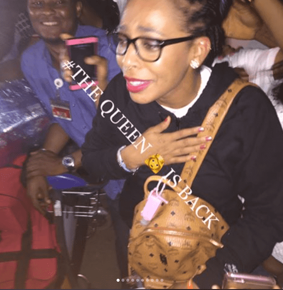 The 33-year-old who arrived at the Muritala Mohammed Airport alongside Debie-Rise and Marvis was received by fans with cheers that almost overwhelmed her.