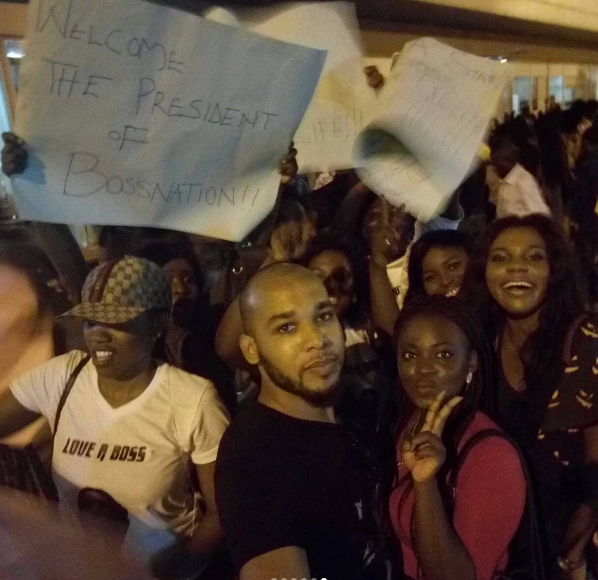 Fans of TBoss, the partly Romanian housemate, who came third in the recently concluded Big Brother Nigeria were overjoyed to see her when she touched down in Lagos on Tuesday night.